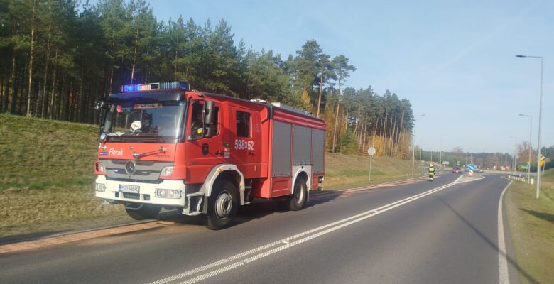 Po dojeździe na miejsce zdarzenia strażacy zastali plamę oleju na drodze wojewódzkiej nr 182.