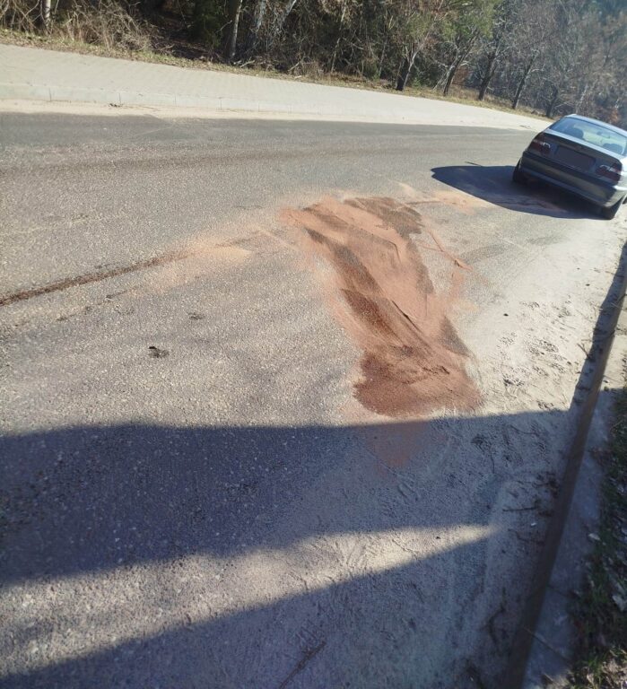 Po dojeździe na miejsce zdarzenia strażacy zastali plamę oleju na drodze gminnej.