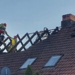 Działania straży pożarnej polegały na zabezpieczeniu miejsca zdarzenia, odłączeniu dopływy prądu do budynku, rozpoczęciu gaszenia palącego się poddasza podając cztery prądy gaśnicze oraz obronie sąsiednich pomieszczeń mieszkalnych. Po opanowaniu pożaru przystąpiono do przewietrzenia i oddymienia budynku.