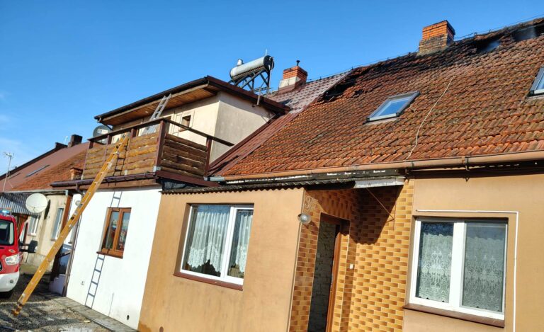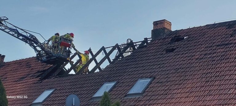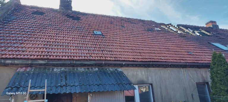 Po dojeździe na miejsce zdarzenia strażacy zastali pożar poddasza w budynku wielorodzinnym o konstrukcji murowanej i drewnianej więźbie dachowej pokrytej dachówką oraz blachodachówką. Mieszkańcy opuścili budynek jeszcze przed przyjazdem służb.